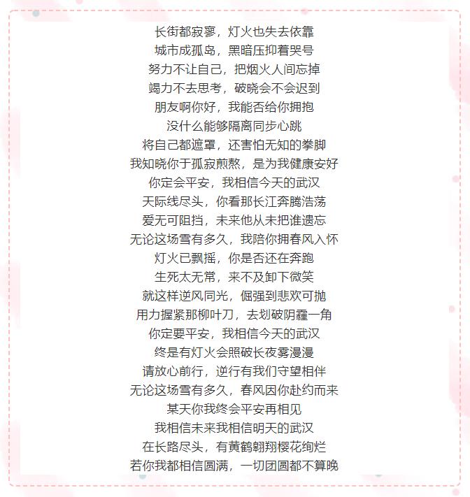汪艾韬同其好友创作的歌曲《我相信你会平安》歌词