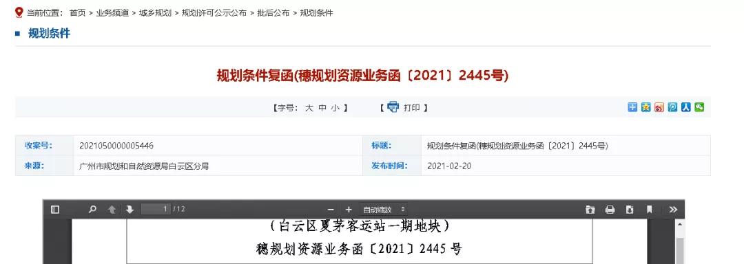 早在今年2月份,广州市规划和自然资源局便挂出白云区夏茅客运站一期地块规划条件的复函,地块集交通、产业、居住等多功能于一体,将建成产城融合综合体。