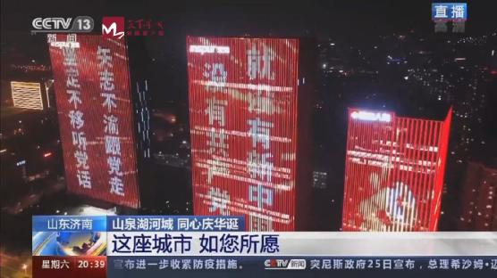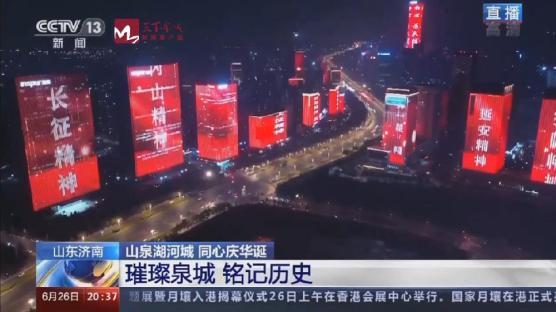 此次灯光秀直播由济南广播电视台协助拍摄。为做好灯光秀宣传报道,济南广播电视台电视新闻综合频道、天下泉城客户端组建融媒报道矩阵,持续作战,积极协助央视完成直播,为广大市民献上了一场光影盛宴,为庆祝建党百年营造了良好舆论氛围。