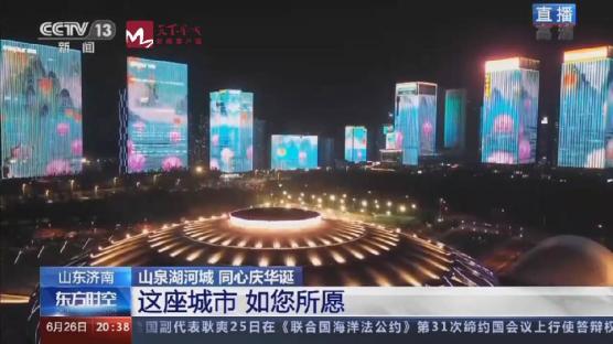 济南灯光秀又上央视了!6月26日晚,中央电视台新闻频道《东方时空》以近6分钟的时间,对济南主题灯光秀“山泉湖河城 同心庆华诞”进行了直播。在为全国观众展示泉城绚丽夜景的同时,直播画面还充分展现了近年来济南落实黄河流域生态保护和高质量发展重大国家战略,在生态保护、交通、民生、营商环境等方面高质量发展的成果。