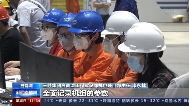 三峡集团白鹤滩工程建设部机电项目部主任康永林:试运行期间,我们对水轮发电机组的设计、制造、安装、调试进行全面考核,我们实行24小时值班制度,全面记录机组的参数,充分检验机组在并网条件下能否长期安全稳定的运行,为机组正式投产奠定基础。