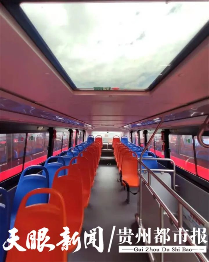 据了解,新车型的整个车前窗和侧窗包括上层都安装有超大玻璃,便于乘客乘车时观赏贵阳城市风景,上下层空间比以前更大,乘客在车内通过时更加舒适。