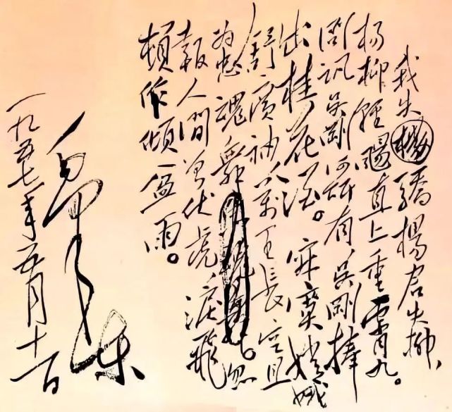 毛泽东手书《蝶恋花 · 答李淑一》。源自网络