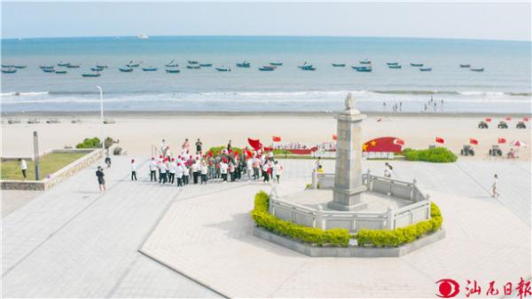 游客在陆丰金厢镇渡海纪念公园接受红色教育的同时,可欣赏“十里银滩”的美丽海景。