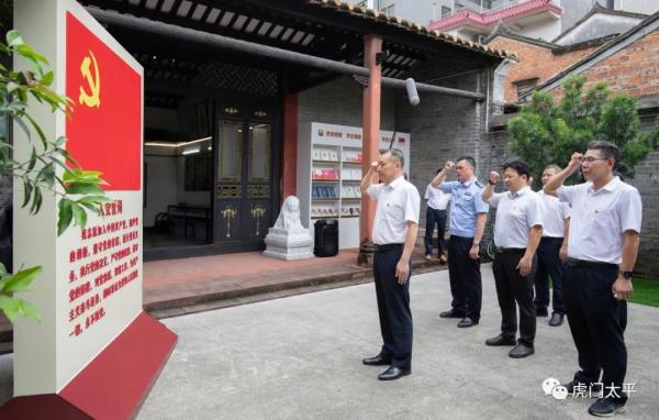 1938年入党的陈超在解放战争时期,受党组织安排从事隐蔽战线工作,为我党获取情报、营救革命志士等付出了巨大努力,作出了积极贡献。其在北栅社区的故居现已被列入东莞市党史教育基地。参观结束后,蒋亚军带领镇领导班子成员在陈超故居小院重温入党誓词,进一步坚定作为党员的理想信念。