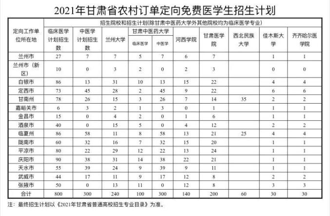 原标题:《甘肃省公费师范生、农村订单定向免费医学生招生计划公布》