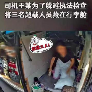 10.客车司机为躲避检查将超载的3人塞进行李舱:近日,江苏扬州民警在巡查时发现一辆大客车形迹可疑,随后竟在该车行李舱里发现3名乘客。经核实,司机超载为躲避检查,竟让3名乘客藏进行李舱企图蒙混过关。最终,民警对超载人员予以分流,对司机罚款200元记6分,其违法行为将抄告所在地的交管和客运部门。(正义网)