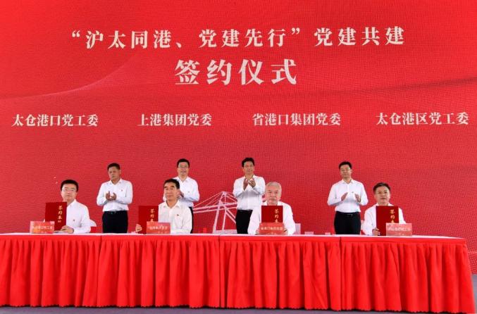 仪式上,太仓港口党工委、港区党工委与上港集团党委、省港集团党委签订了党建共建合作协议,将充分发挥党建工作在沪太同港化进程中的引领作用,建立党建工作协商交流机制,以党建引领共谋一体化发展。