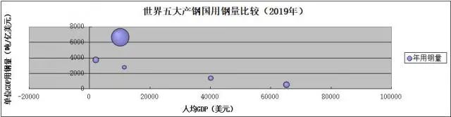 除中国外,世界前五大产钢国还有印度、日本、美国和俄罗斯。与这些国家相比,中国的单位GDP用钢量同样是鹤立鸡群。上述四国中印度的单位GDP用钢量最高,也只有3725吨/亿美元。
