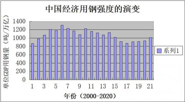 用钢强度在这里特指每单位国内生产总值(GDP)的用钢量。中国的用钢强度高具有多方原因,但很大程度上反映了中国的国情和选择的发展道路。