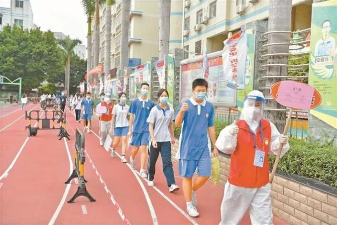 宝安区下十围小学考点工作人员引导考生走出考场。通讯员 朱瑒/图