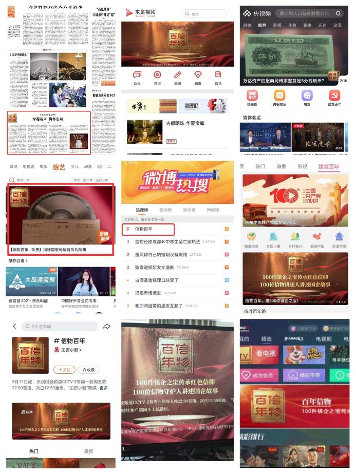 作为庆祝中国共产党成立一百周年特别策划节目,《信物百年》在多家媒体、多个平台、多个场景以多种形式广泛传播。