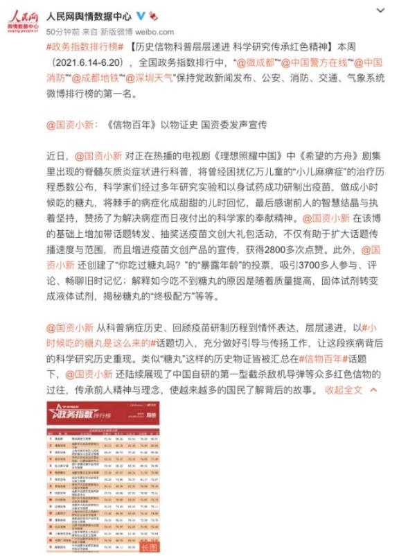 以信物及其故事为线索,多家媒体、平台进一步深挖内容,通过制作多样化的新媒体产品,立体呈现红色历史,实现了较好的传播效果。如《信物百年》之《制作糖丸的包衣机》播出后,@国资小新 以#小时候吃的糖丸是这么来的#话题切入,通过开展互动、发布科普视频等多种方式,挖掘糖丸生产过程、制作配方等背后的故事,广泛引发网友关注、共鸣、互动。目前,#小时候吃的糖丸是这么来的#话题阅读量已超过600万。