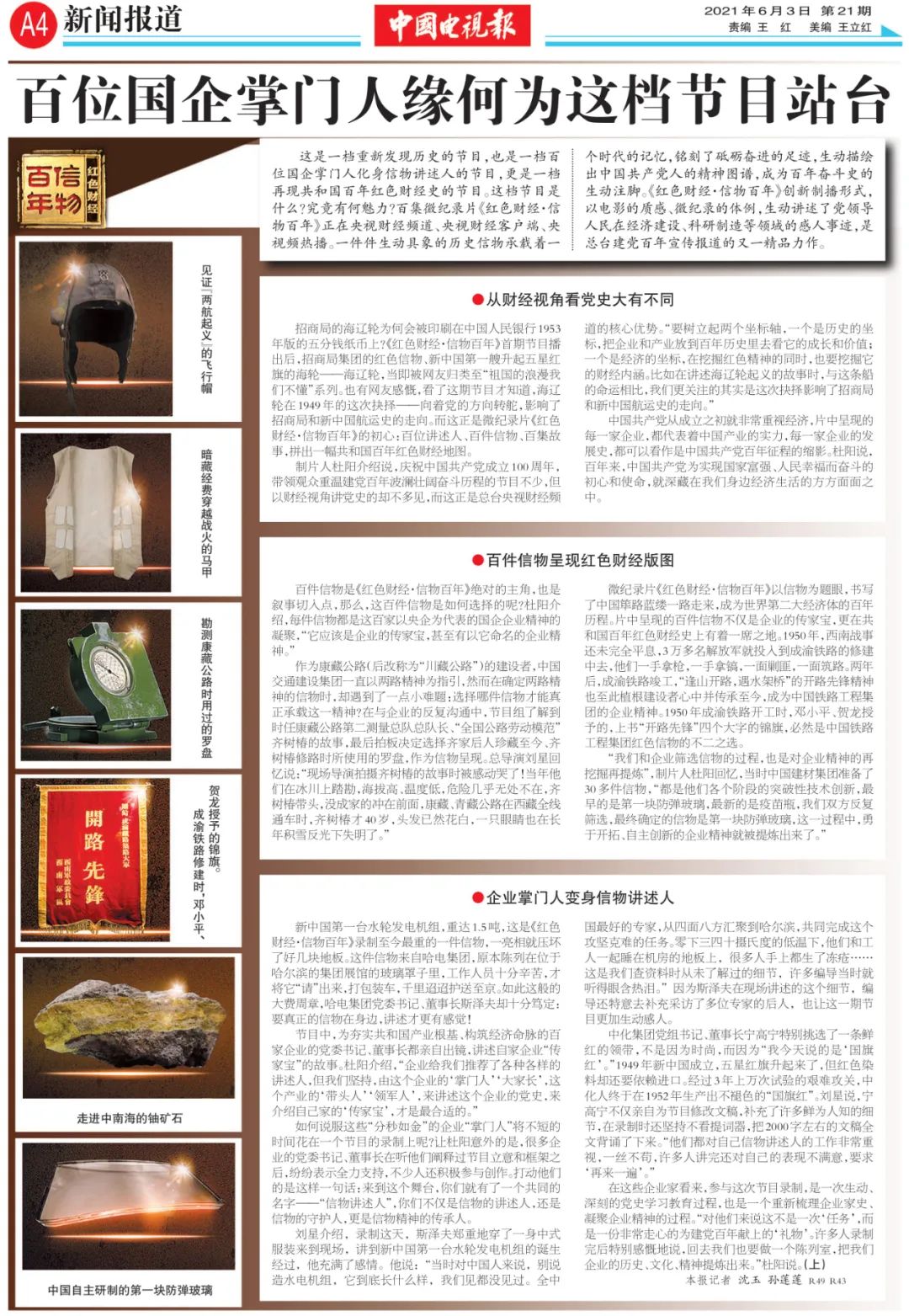 《中国电视报》采访了节目主创团队,围绕节目撰写深度报道《百位国企掌门人缘何为这档节目站台》上下两篇文章,披露了节目录制台前幕后的诸多动人细节。除了再现主创者心路历程、录制故事外,文章称节目创新制播形式,以电影的质感、微记录的体例,生动讲述了党领导人民在经济建设、科研制造等领域的感人事迹,是总台建党百年宣传报道的又一精品力作。