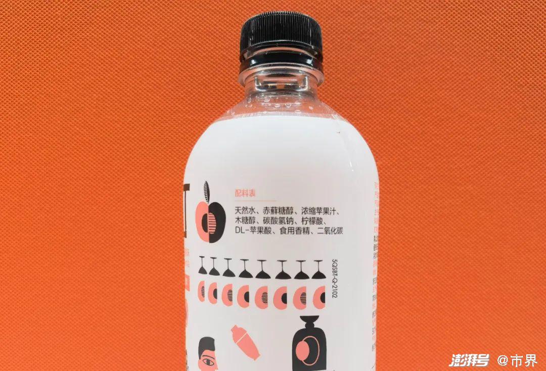 市界查看这款产品配料表发现,该产品主要成分为:天然水、赤藓糖醇、浓缩苹果汁和木糖醇等。别说拂晓白桃了,这款白桃风味的气泡水,根本没有任何桃汁。