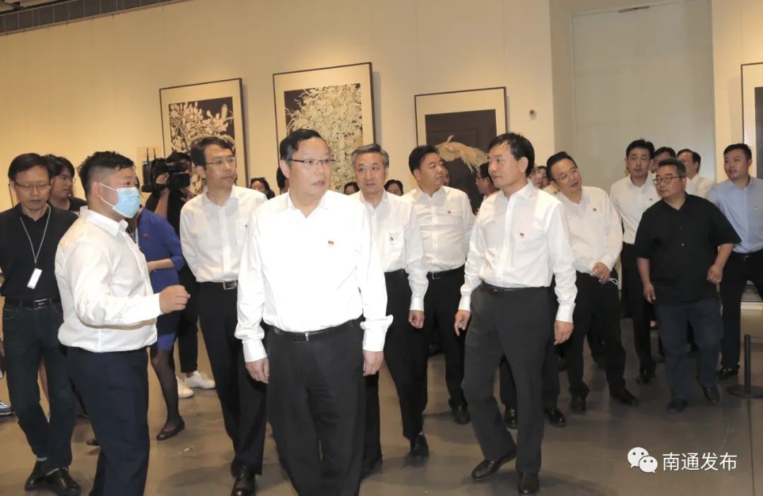 徐惠民观看展览后说,在喜迎党的百年华诞之际,南通人民有了自己的现代化、标准化的美术馆,南通美术馆建筑优美,艺术氛围浓厚,首展组织有序,丰富了南通人民的精神文化生活。要用好这个阵地,举办好展览,既要面向艺术大家,也要服务基层书画爱好者,使之成为全市人民包括南通籍在外艺术家展示艺术作品的重要平台。