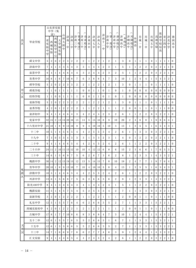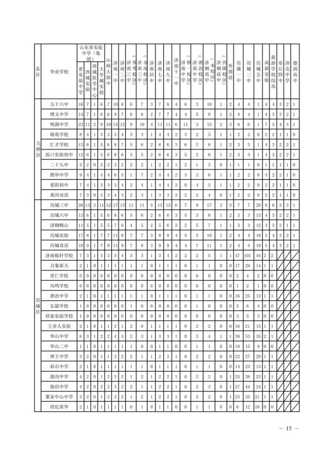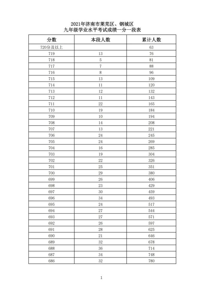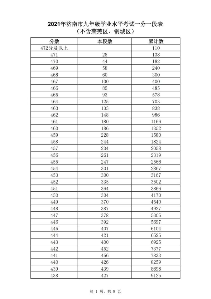 为方便考生填报志愿,中招办在公布各类志愿填报资格线的同时,公布全市(不含莱芜区、钢城区)及市内七区(历下、市中、槐荫、天桥、历城、高新、南山)九年级学业水平考试一分一段表。
