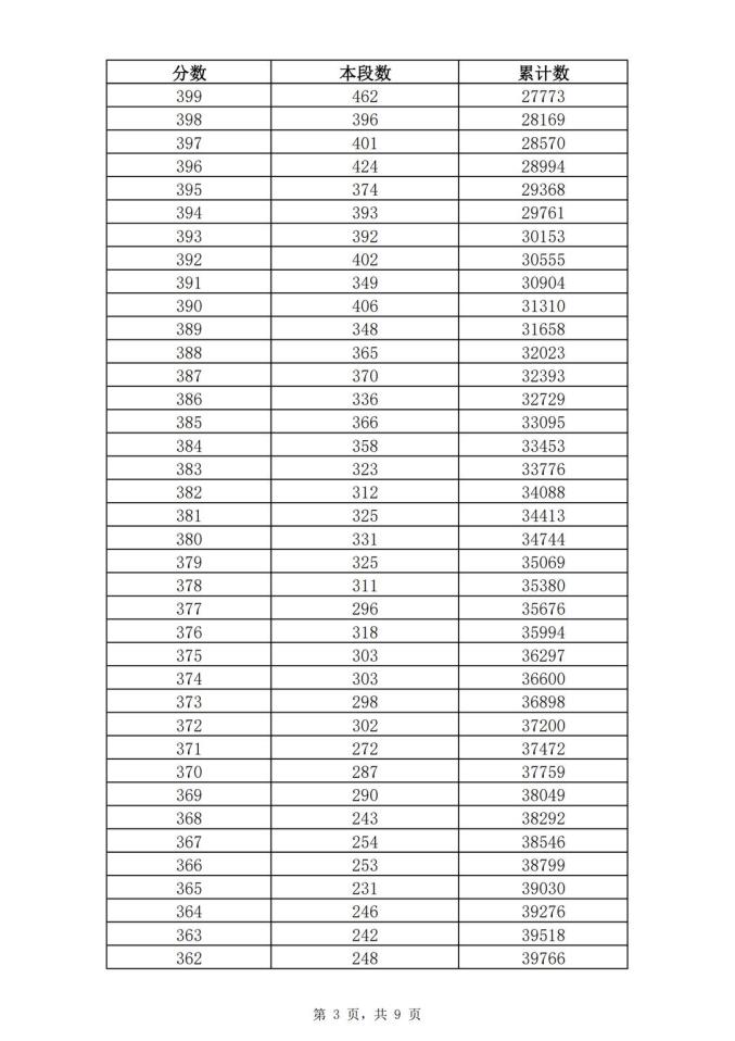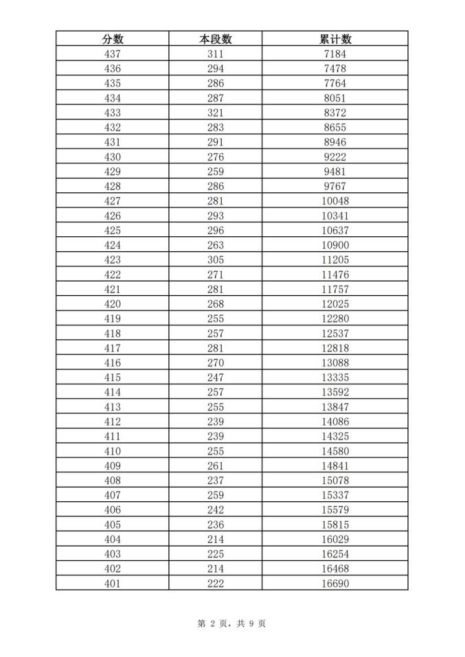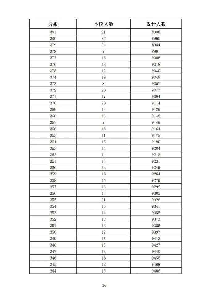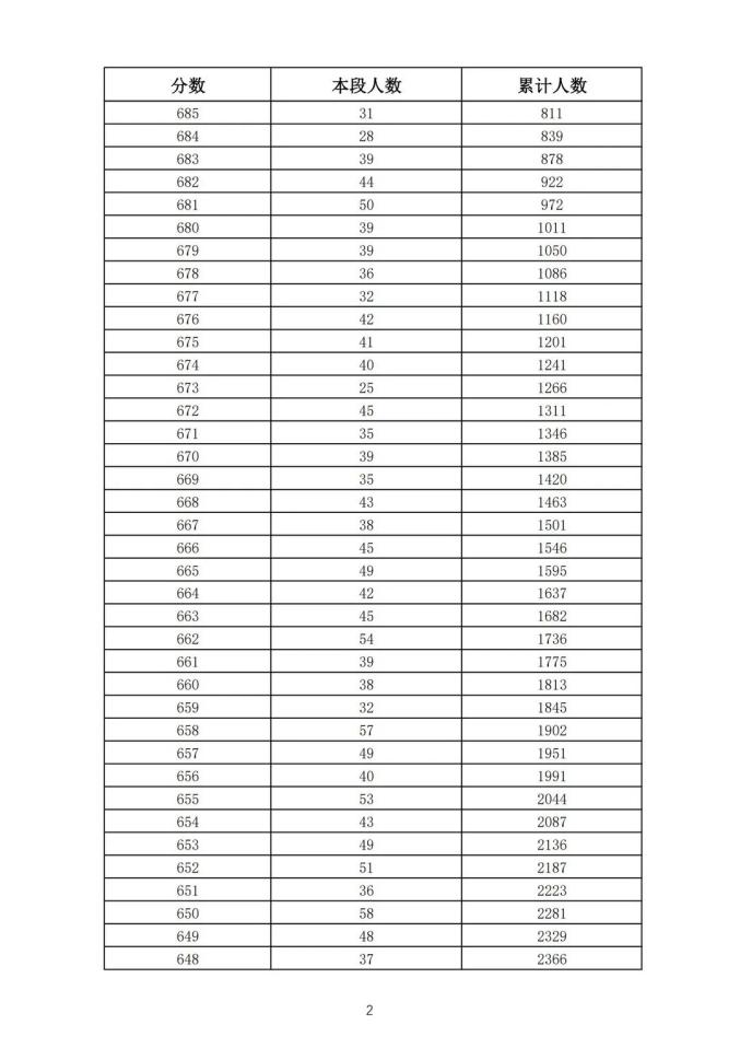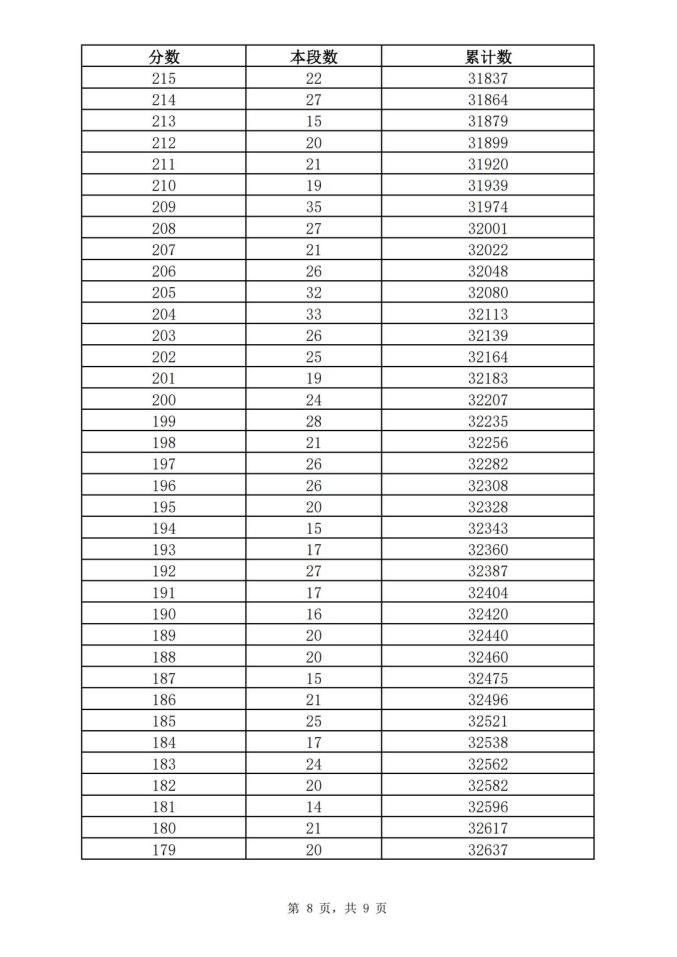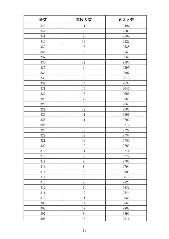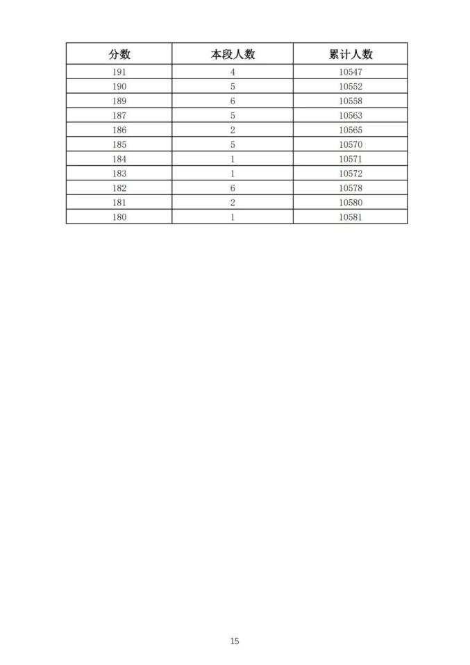 考生一分一段表