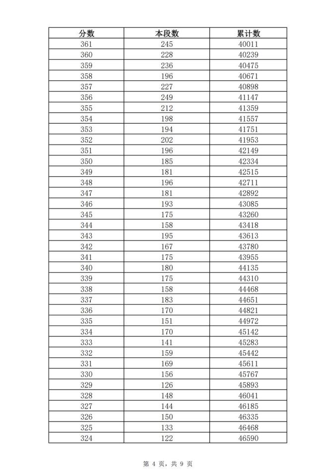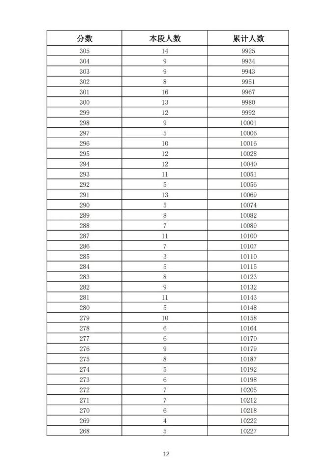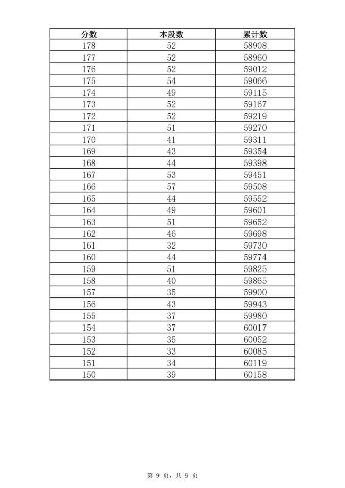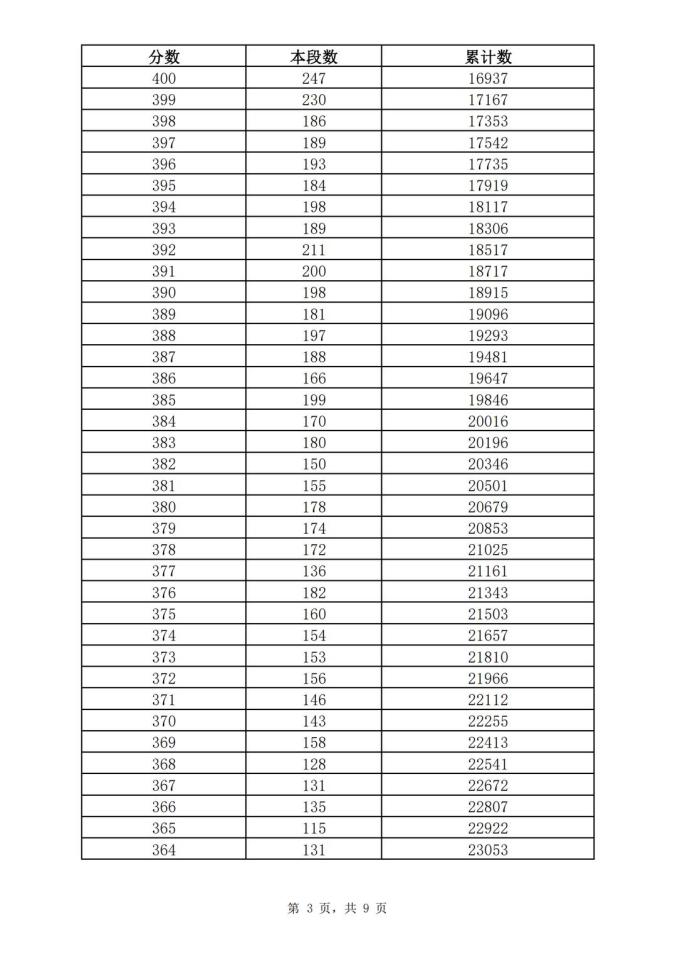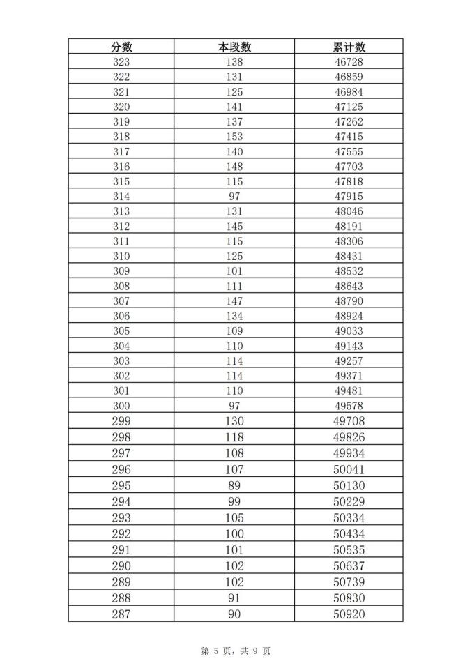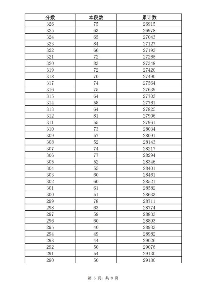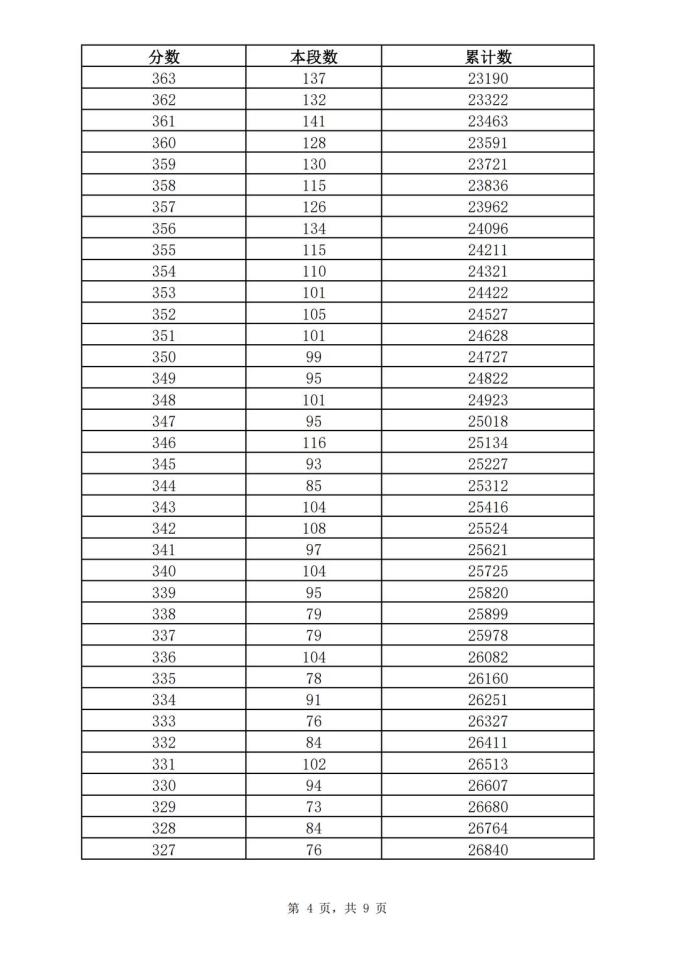 考生一分一段表