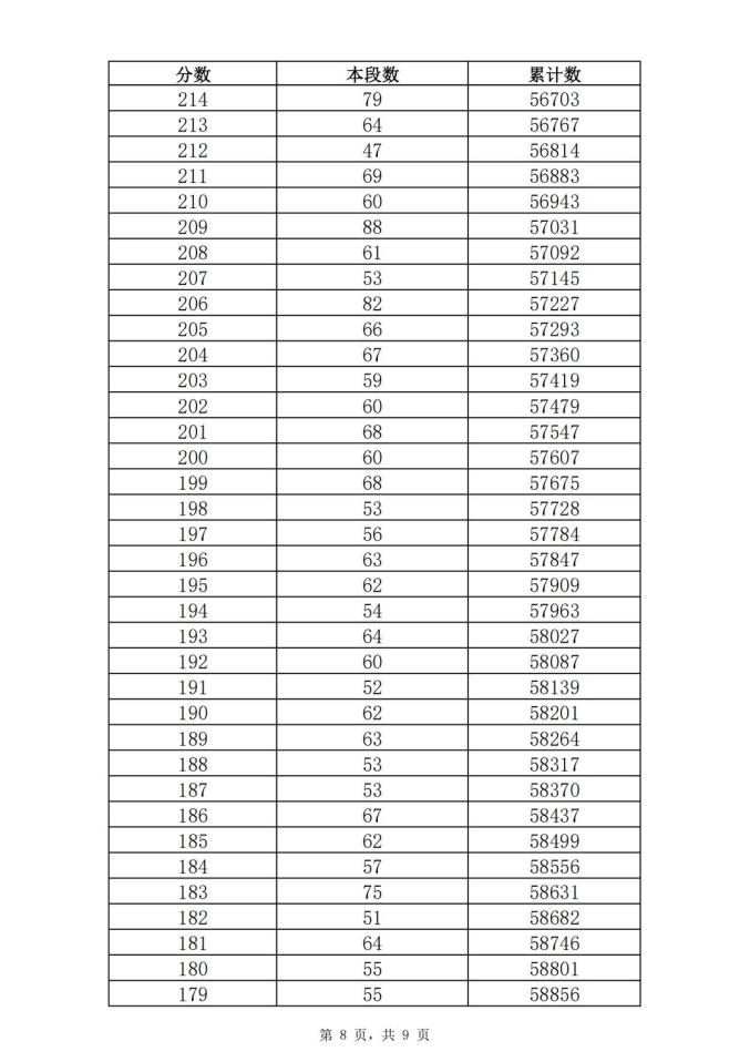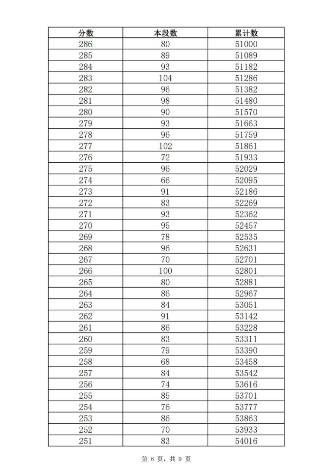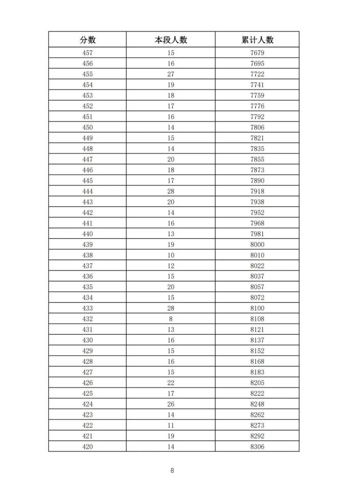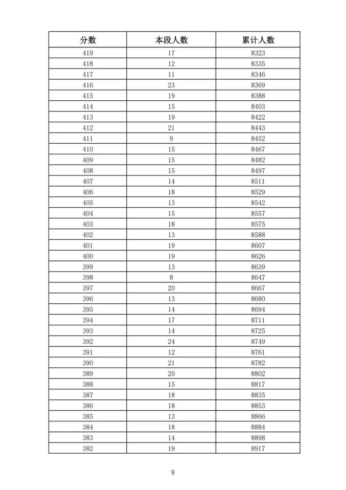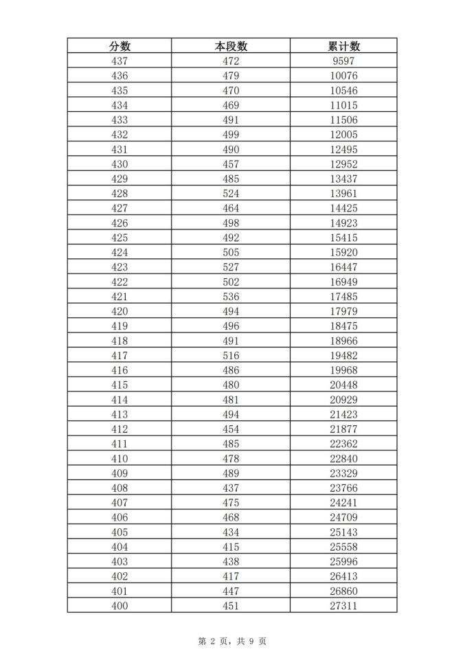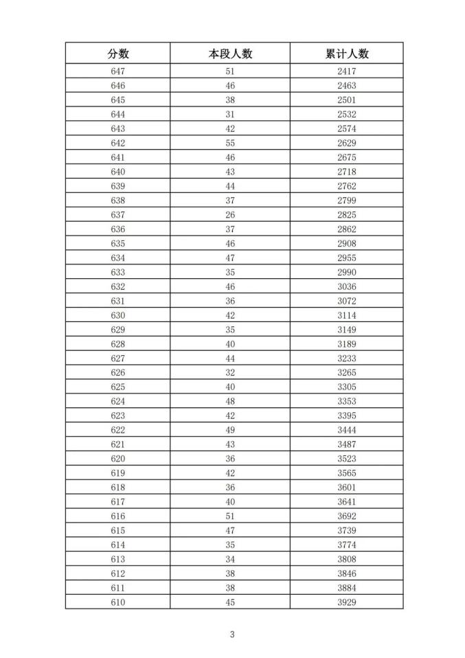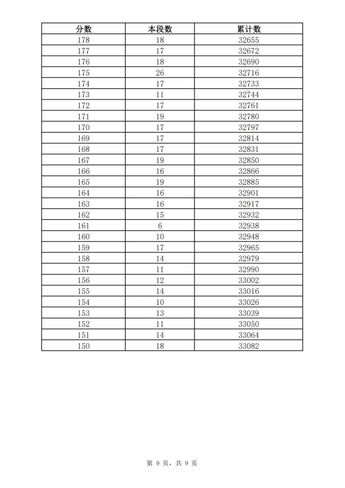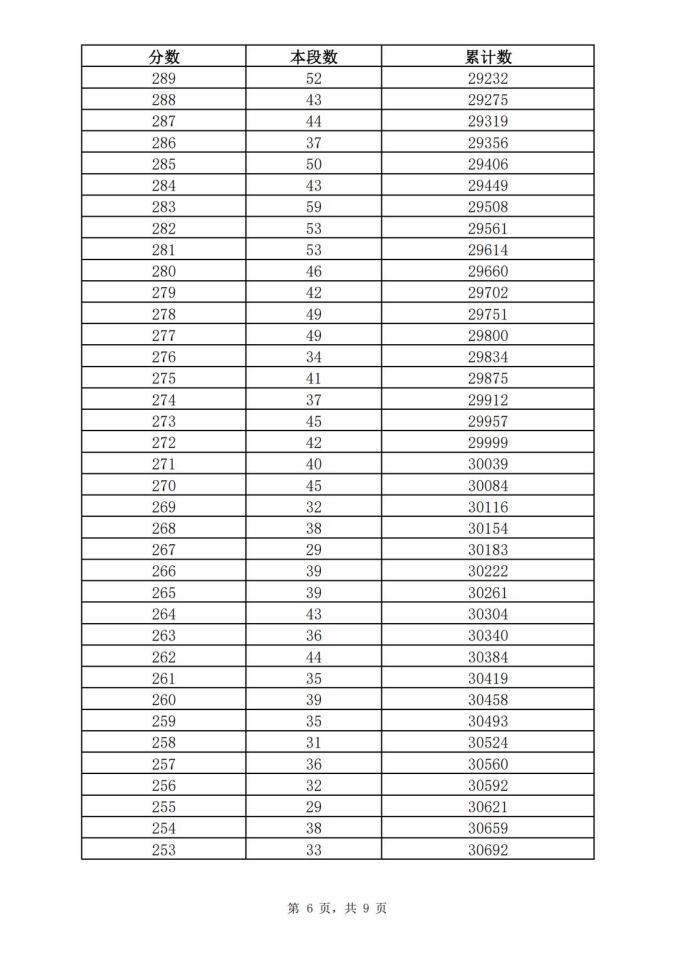 考生一分一段表