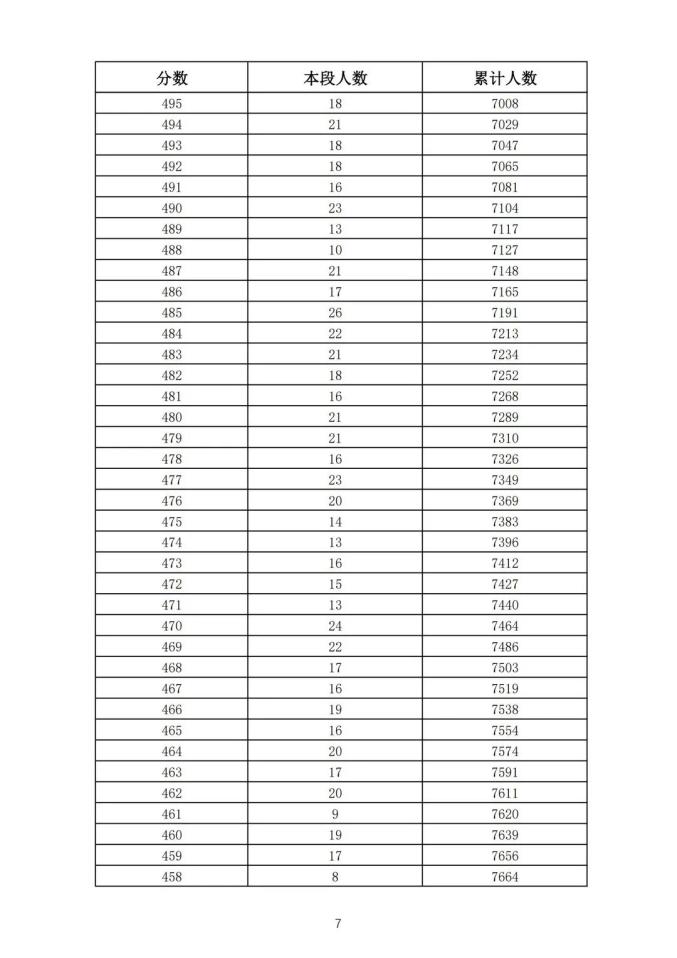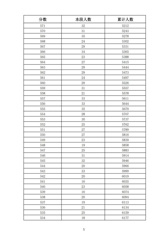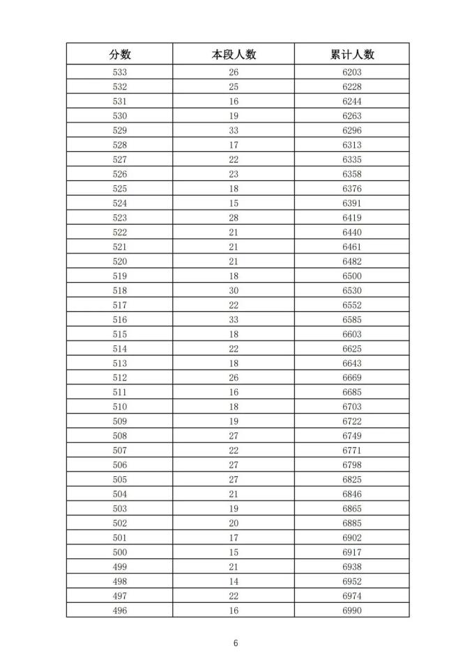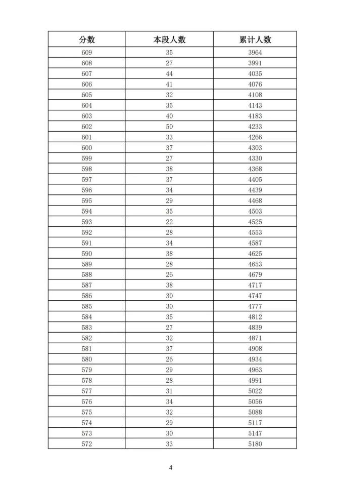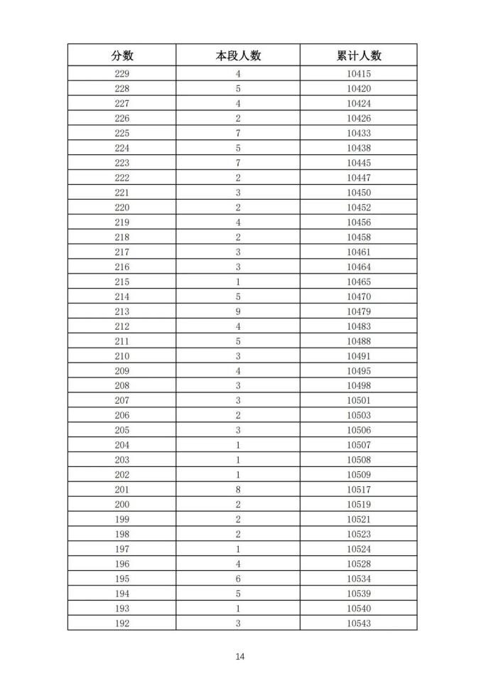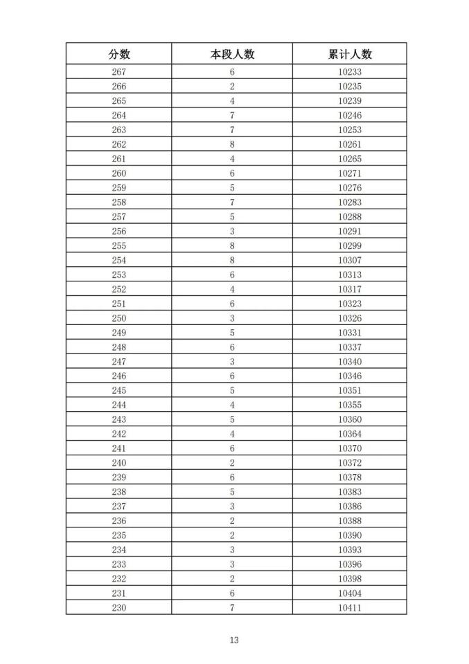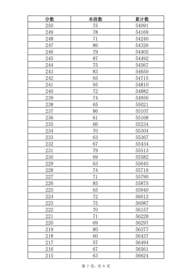考生一分一段表