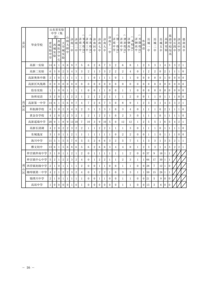 答:山东省实验中学(集团)包括山东省实验中学、济南西城实验中学(含医学中心校区)(山东省实验中学西校)、济南大学城实验高中(山东省实验中学教育集团核心学校)三所学校,使用统一学校代码“001”。山东省实验中学、济南西城实验中学(含医学中心校区)及济南大学城实验高中分别单列招生计划。填报普通高中志愿时,填写学校代码“001”,即弹出附表,包含以下内容: