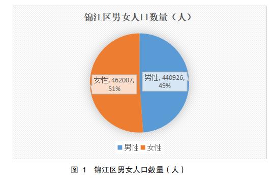 锦江区常住人口中,男性440926人,女性462007,女性比男性多21081人,男女性别比为95.44,比全市低5.59,与2010年第六次全国人口普查数据相比,男女性别比下降4.27,女性人口占比上升幅度较大。