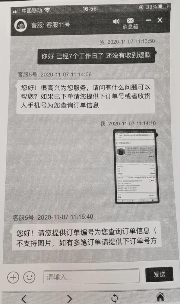 7个工作日过后,消费者杨先生仍未收到这两部手机的价款,于是再次联系对方客服,但却被告知60个工作日退款。