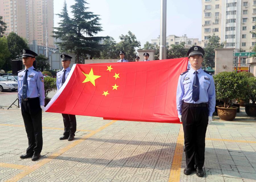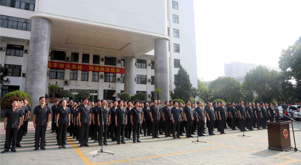 上午8点30分,全院干警在机关院内整齐列队,伴随着雄壮激昂的《中华人民共和国国歌》,升旗手奋力挥臂,五星红旗迎风飘扬,冉冉升起,全体干警注视着冉冉升起的国旗,一起唱响国歌,每个人心中都充溢着对伟大祖国的深深祝福以及对工作的奋斗激情。