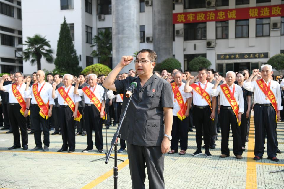 在宣誓仪式上,秦德平院长代表院党组向荣获“光荣在党50年”纪念章的老党员代表、新入额的6名法官,以及新入党的7名同志表示热烈的祝贺,并指出全院干警要牢记习近平总书记的嘱托,以此次宣誓为契机,深入开展党史学习教育,传承红色基因,学习先进模范,凝聚起前进的磅礴力量,并勉励全院干警要继续坚定理想信念、坚守公平正义底线、践行司法为民宗旨、始终保持清正廉洁,引领和保障全院工作高质量发展行稳致远,努力为推动全院工作再上新台阶再立新功。