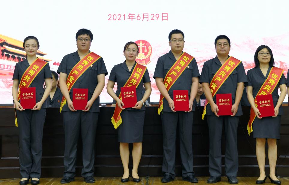 会上,南阳中院党组成员、政治部主任卫江宣布了南阳中院关于表彰“两优一先”的决定,64名优秀党员,6名优秀党务工作者,6个先进党支部受到表彰,受到表彰的优秀党员代表、优秀党务工作者、先进党支部先后上台领奖。