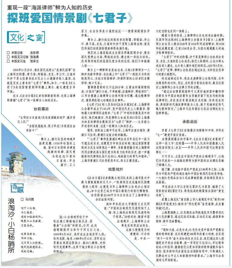 近日,《法治日报》记者探班排演现场,还原上海律师营救“七君子”的一段鲜为人知的历史。