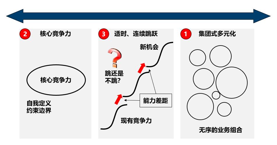在面临是否跳跃与选择其方向和时机之时,企业战略是动态的,企业必须要对自己的核心和边缘业务有着明确的判断。