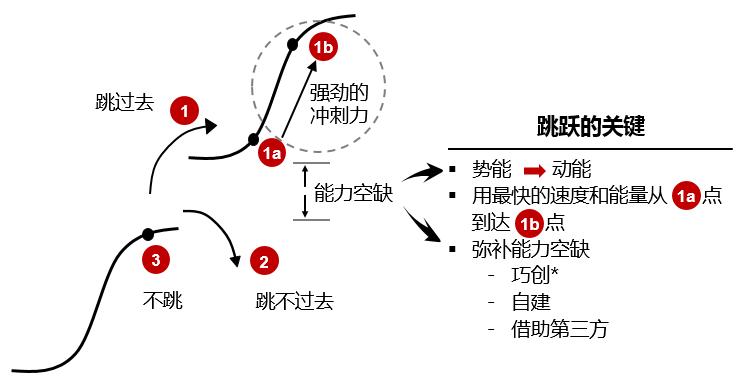 (1)跳过去,并成功地跳跃,在跳过去之余,尽快建立新能力和弥补能力的空缺;