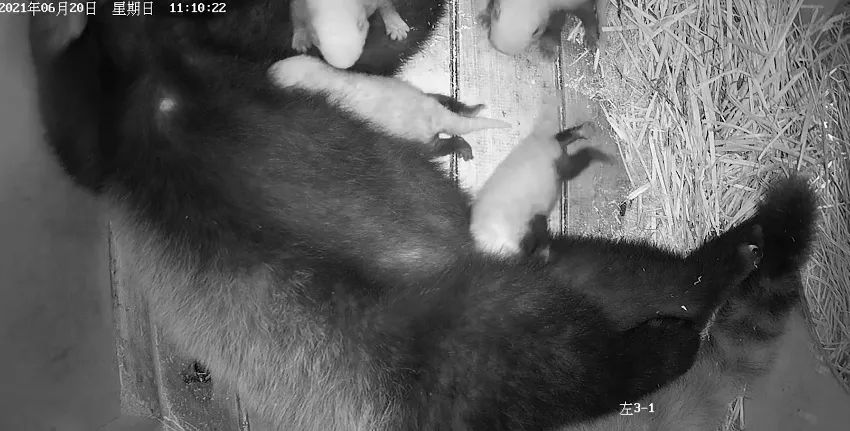 据悉,6月18日,熊猫基地饲养员发现一只小熊猫母兽出现烦躁、打滚、翻动窝草等临产反应。随后,在饲养员及专家的看护下,该小熊猫母兽于6月19日8点31分、8点55分、11点27分和11点34分,分别产下4只小熊猫幼崽。通过监测,4只幼崽体重均在100克左右,在正常初生体重范围内。