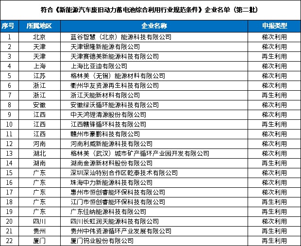 今年初,工信部又发布了符合《新能源汽车废旧动力蓄电池综合利用行业规范条件》的第二批企业名单,多个巨头开始介入,为解决动力电池回收再生利用问题持续扩充专业阵容。