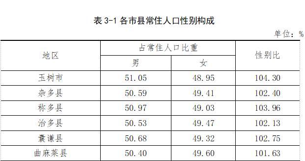 原标题:《玉树州第七次全国人口普查公报[1](第三号)丨常住人口性别构成情况》
