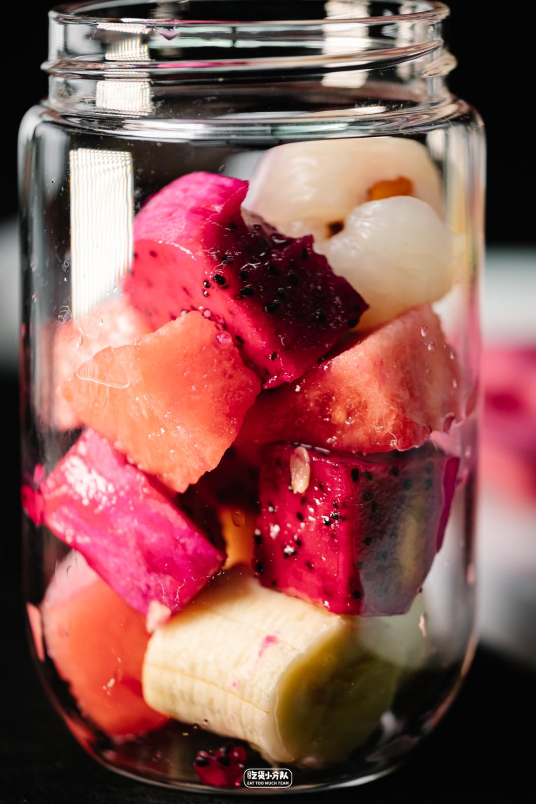 不想简简单单吃水果,只需要选几种自己爱吃的水果,或者把家里有的水果随意切些边角搅碎后倒入模具,放在冰箱里冷冻一夜。滚子这里选的是香蕉、西瓜火龙果和荔枝。