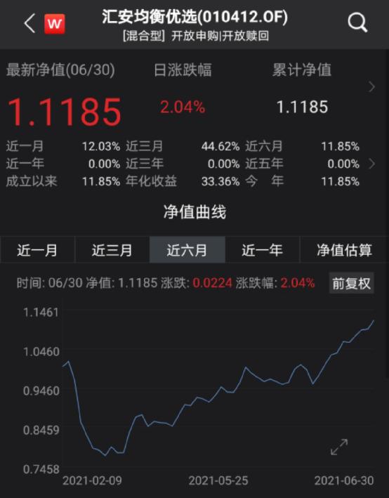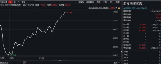 截至6月30日,汇安均衡优选最新净值为1.1185元,已连续10个交易日站在1元上方。