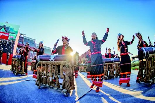 2020年12月30日,佤族群众载歌载舞庆祝临沧火车站通车。贾翔 摄
