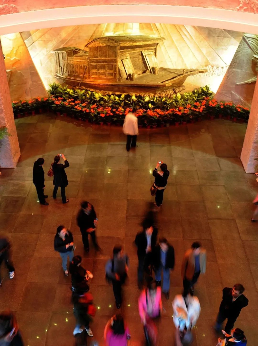 2011年4月19日,人们在浙江嘉兴南湖革命纪念馆内的“红船”雕塑前参观