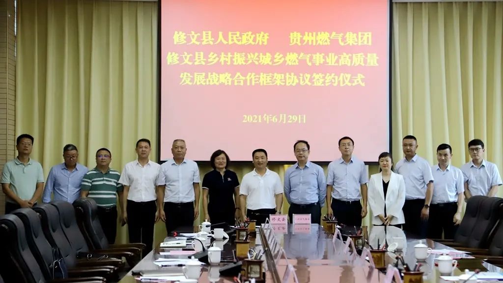 6月28日,修文县与贵州燃气集团举行战略合作框架协议签约仪式,旨在推动修文县城乡燃气基础设施配套建设和服务向乡村延伸,助推修文乡村振兴和城乡燃气事业高质量发展。