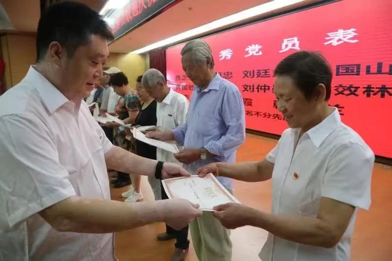 随后,为社区达到50周年以上党龄老党员同志们颁发了纪念章,党龄在50年以上的老党员们佩戴上勋章后,重温入党誓词。大家激动地表示,要不忘初心、牢记使命,永远跟党走。同时,为进一步增强预备党员的责任感和使命感,坚定党员不忘初心、砥砺奋进的决心和信心,社区组织今年新发展的党员也参加了入党宣誓活动,要求他们牢记全心全意为人民服务这一根本宗旨,按时缴纳党费,积极参加党的组织生活,定期向党组织汇报思想、学习、工作动态等。新党员杜阳表示,能参加社区组织的宣誓活动感到无比光荣,将在今后的工作中立足岗位,积极发挥模范引领作用,争做新时代的合格党员。