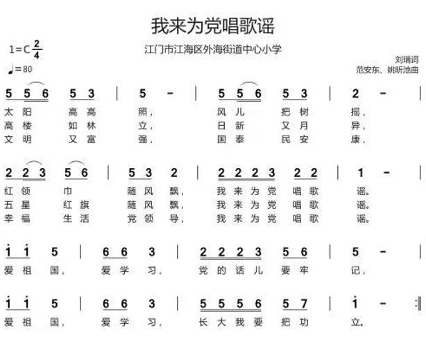作词:江门市蓬江区棠下镇实验小学语文课组,作曲:胡剑锋、聂嘉仪