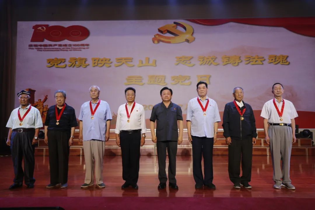 马国伟同志在致辞中表示,今天,我们满怀喜悦迎来了中国共产党的百年华诞,举办“党旗映天山 忠诚铸法魂”主题党日活动,就是要歌颂伟大、光荣、正确的中国共产党,是贯彻落实习近平总书记重要讲话精神的一项具体举措。通过组织新党员宣誓,向老党员颁发“光荣在党50年”纪念章,激发全院党员干警弘扬坚持真理、坚守理想,践行初心、担当使命,不怕牺牲、英勇斗争,对党忠诚、不负人民的伟大建党精神。