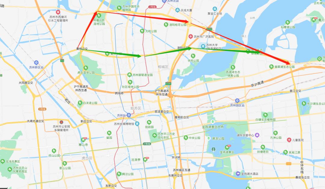 此前一段时间,“苏州中环北线”并不是一条完整的快速路,而是借用了部分G312国道及S228快速路。