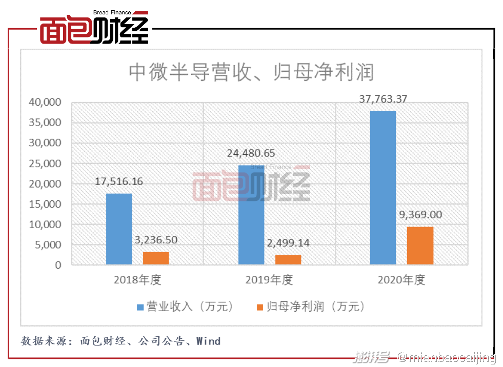 2020年,中微半导进行两次增资。6月的增资单价为21.08元/股,公司投后估值15.02亿元;12月的增资单价为50元/股,公司投后估值37.49亿元。在约半年的时间里,公司估值实现超翻番。