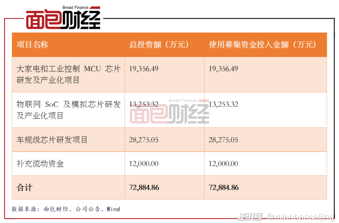 中微半导拟将募集资金用于大家电和工业控制MCU芯片研发及产业化项目、物联网SoC及模拟芯片研发及产业化项目、车规级芯片研发项目和补充流动资金。
