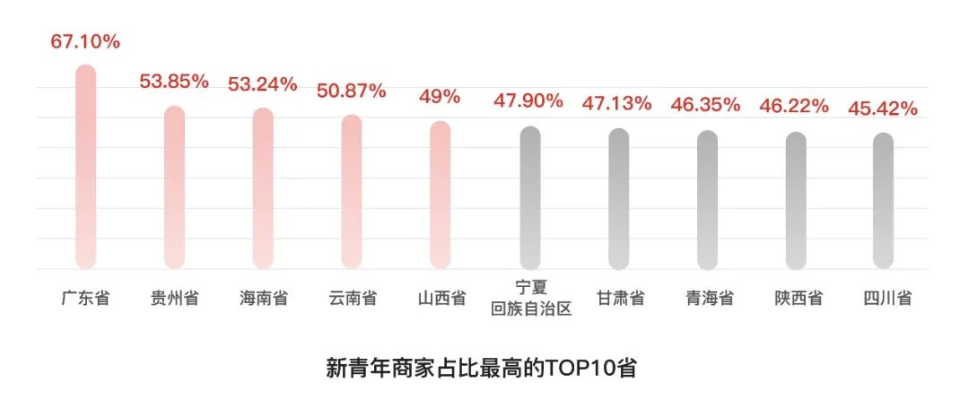 广东、福建新青年商家数量占优,