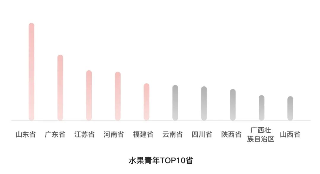 除了零食,水果同样是新青年电商的最爱创业方向之一。《报告》显示,过去12个月的新青年水果店铺数量增速超过148%,越来越多的新青年们选择返乡卖水果、卖农货,成为脚上沾泥的“水果青年”“农货青年”,把樱桃、苹果、柚子或者好吃的特色农货搬出家乡,通过云端直连消费者,助推乡村振兴和农村现代化,助力美丽乡村建设。